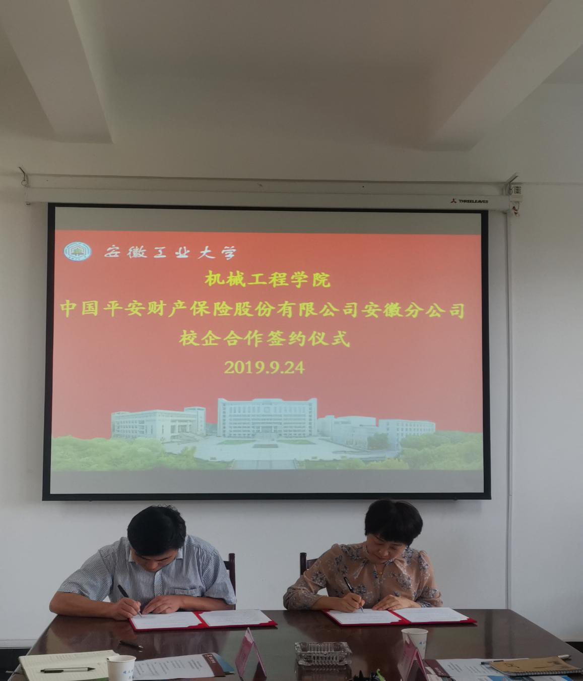 9月24日上午,600全讯白菜与中国平安财险股份有限公司安徽分公司“校企合作”签约仪式在机械楼302会议室举行。中国平安财险股份有限公司马鞍山中心支公司总经理陈青、中国平安财产保险股份有限公司安徽分公司人力资源部经理孔凡荣、安徽分公司车意理赔部经理吴刚、安徽分公司车意理赔部车物管理团队经理朱佳、安徽分公司人力资源部发展规划室经理方业成、马鞍山中心支公司理赔部经理张永鹏、公司党委书记徐柳根、600全讯白菜副经理李克明等出席签约仪式。