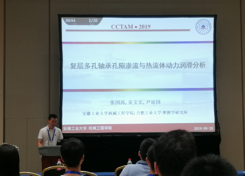 600全讯白菜有六位老师参加了本次盛会。其中,张国涛博士和方光武博士分别开展了“复层多孔轴承孔隙渗流与热流体动力润滑分析”和“基于裂纹带方法的陶瓷复合材料多层界面相损伤演化有限元模拟”专题汇报,黄向明老师和汪超老师分别开展了“地球质量的演化”和“Multi-objective shape optimization of plates with cutouts by extended isogeometric analysis”墙报展示活动,取得了很好的学术交流效果。